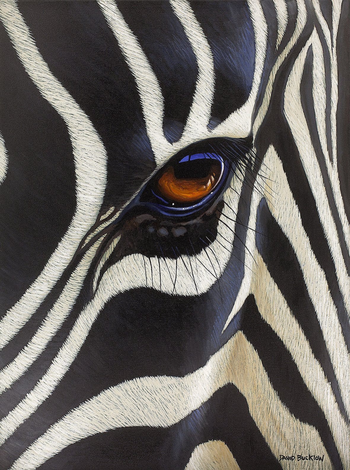 Unveil the captivating allure of "Eye of the Beholder," a limited edition print by David Bucklow that delves into the watchful gaze of the zebra—a testament to nature's unwavering caution.